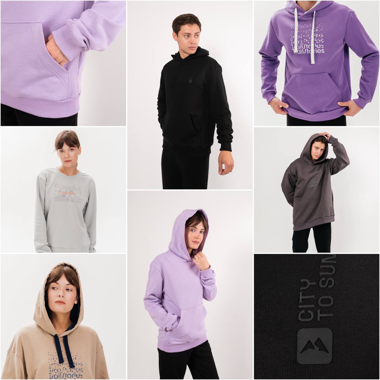- Толстовки, худи и свитшоты (с начёсом или без, из кулирной глади, флиса-трёхнитки);